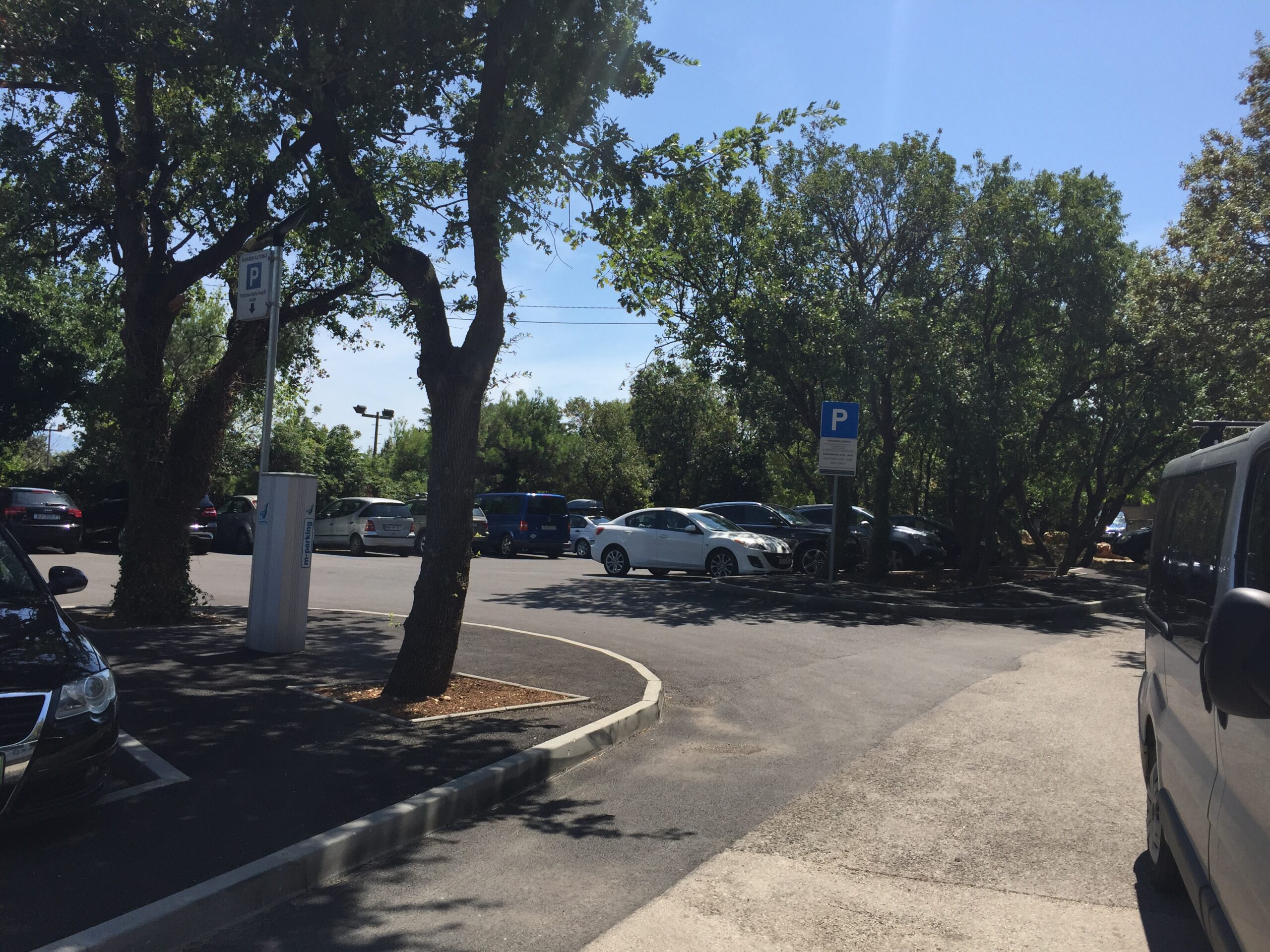 Parkiralište “Slavuj” se nalazi nasuprot INA benzinske postaje na državnoj cesti broj 8. U neposrednoj blizini parkirališta nalaze se hotel Lišanj, glavna gradska plaža, benzinska postaja, autobusna stanica i pošta.