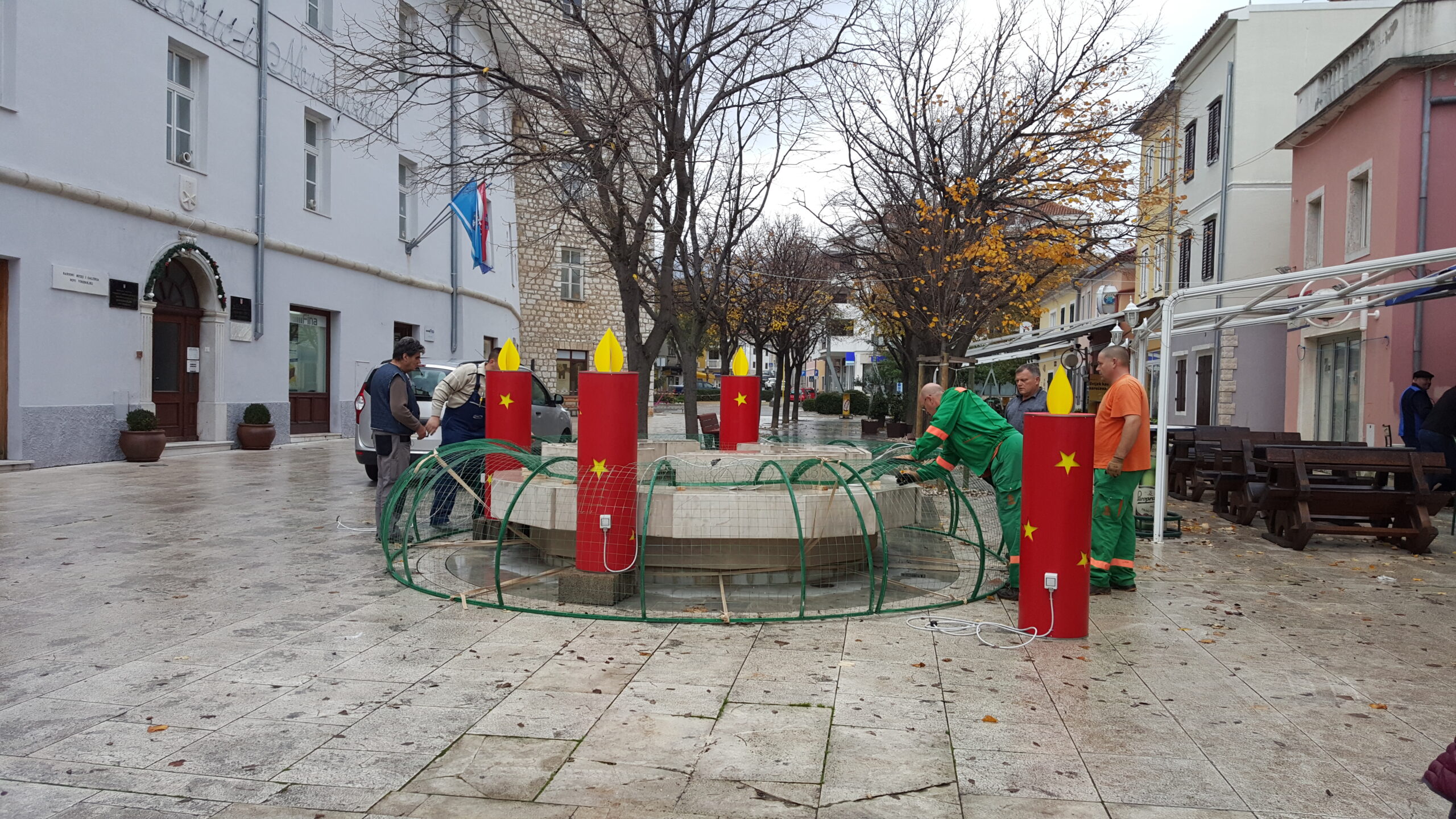 Na Trgu Vinodolskog zakona, oko fontane potpisnika Vinodolskog zakona, djelatnici Komunalnog trgovačkog društva IVANJ d.o.o. postavili su novi veliki adventski vijenac. Na aluminijsku konstrukciju bogato su nanizali grane smreka i jela. Četiri velike svijeće koje će se paliti svake nedjelje do Božića ukrasili su prirodnim ukrasima. Tu su plodovi borova koji rastu uz jadransku obalu ( češeri pinije, brucije, alepskog bora, crnog bora), plodovi zimzelene magnolije, dunjarice, palmi,… Vijenac je ukrašen crvenim mašnama i nezaobilaznim lampicama.
