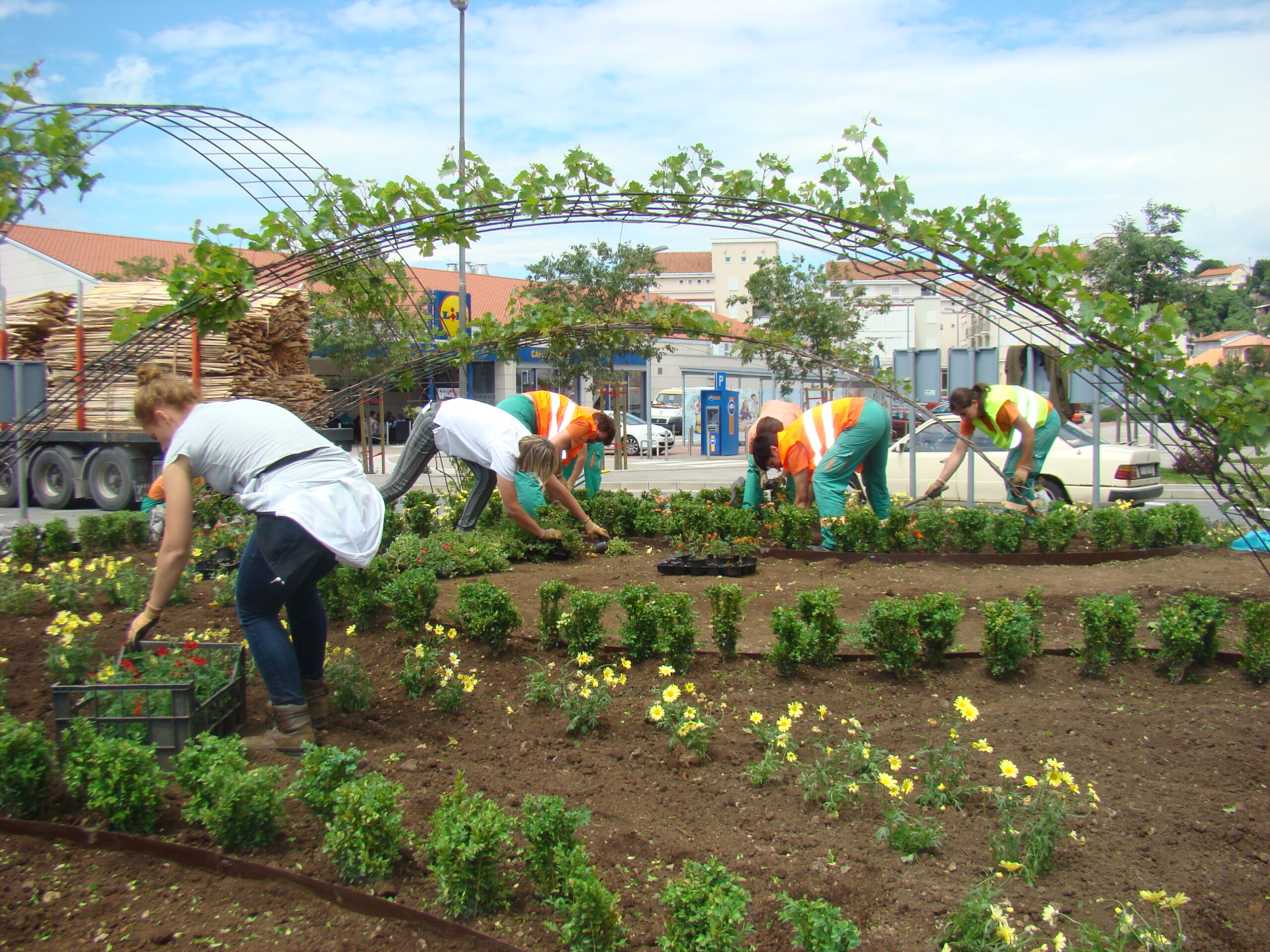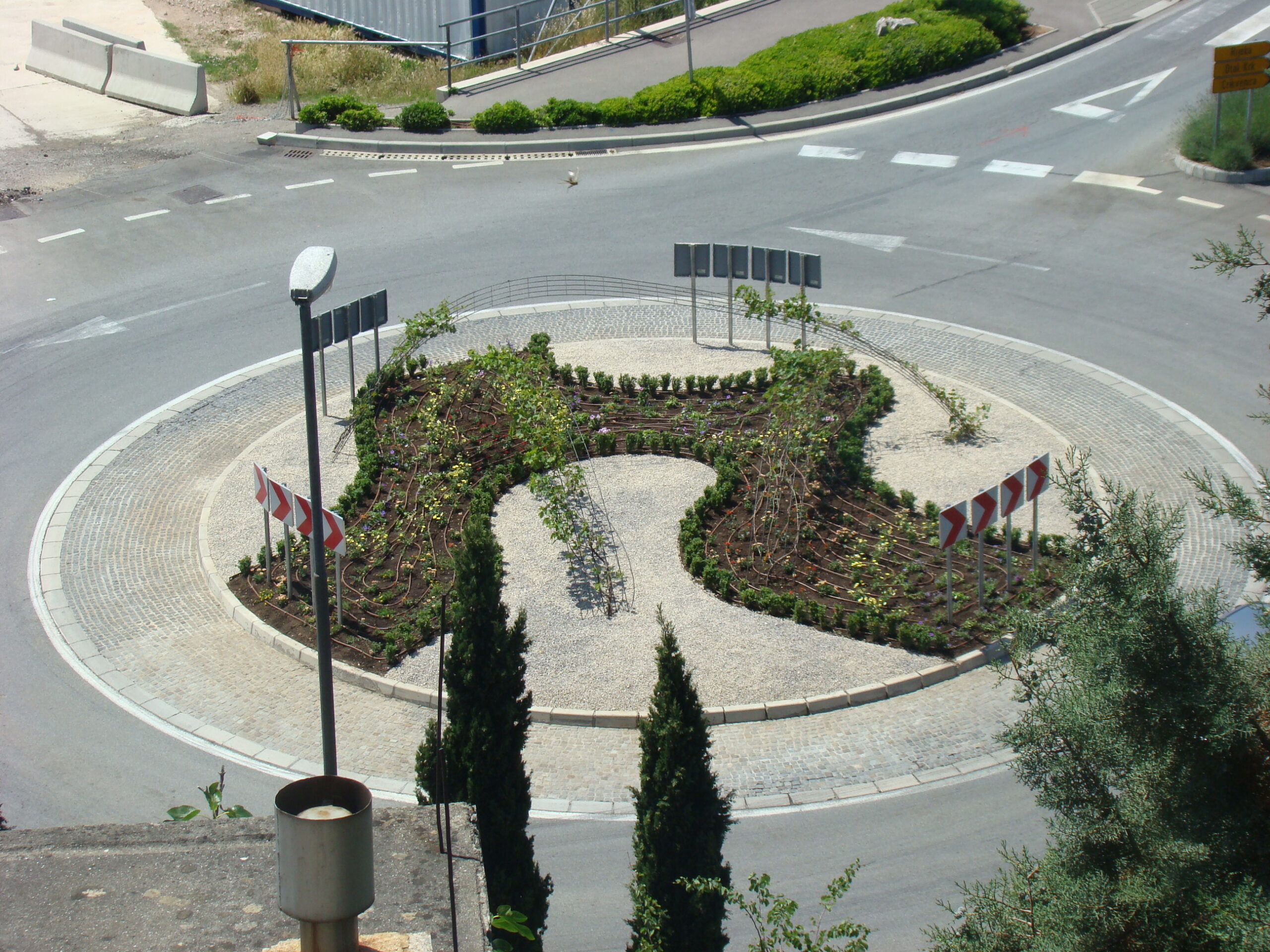 Kako bi se unijelo malo noviteta i smanjili troškovi održavanja zelenih površina krenulo se u malu rekonstrukciju središta kružnog toka. Smanjila se površina cvjetne gredice za 50 %, a time su i troškovi održavanja smanjeni za isti postotak. Cvjetna ploha omeđena je zimzelenom živicom po lokalnom nazivu MALA GORA, uvriježen hrvatski naziv je šimšir –lat. Buxus sempervirens. To je vrsta koja se u Novom Vinodolskom koristi kao dio narodne nošnje, a u svom vrtu ima je svaki Novljanin. Vanjski dio od živice do prometnice prekriven je protukorovnom zaštitom i sitnim drobljencem.