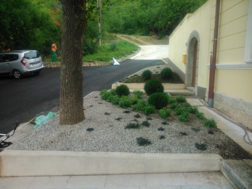 U Grižanama uz staru školu, danas Kuća Klović uređena je zelene površina.
