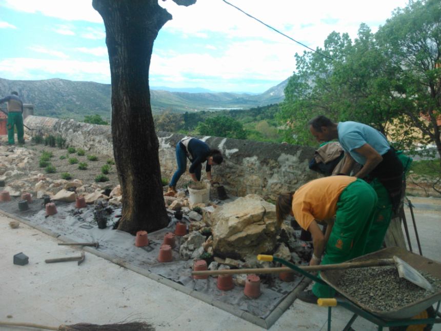 U Grižanama uz staru školu, danas Kuća Klović uređena je zelene površina