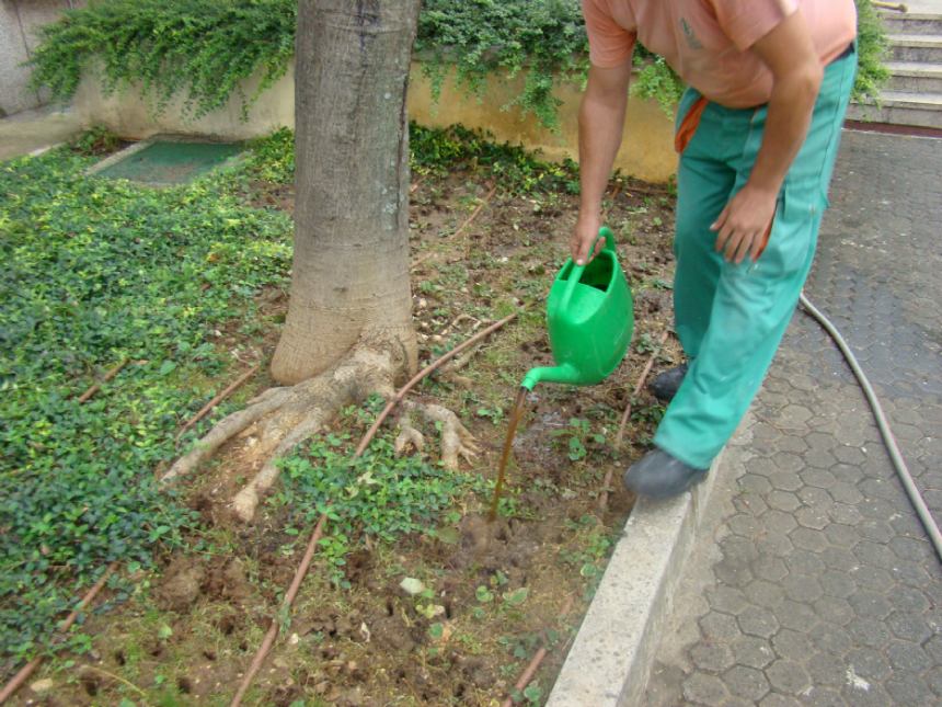 - kod sadnje grmova i trajnica umakanjem korijenove bale u pripremljenu otopinu