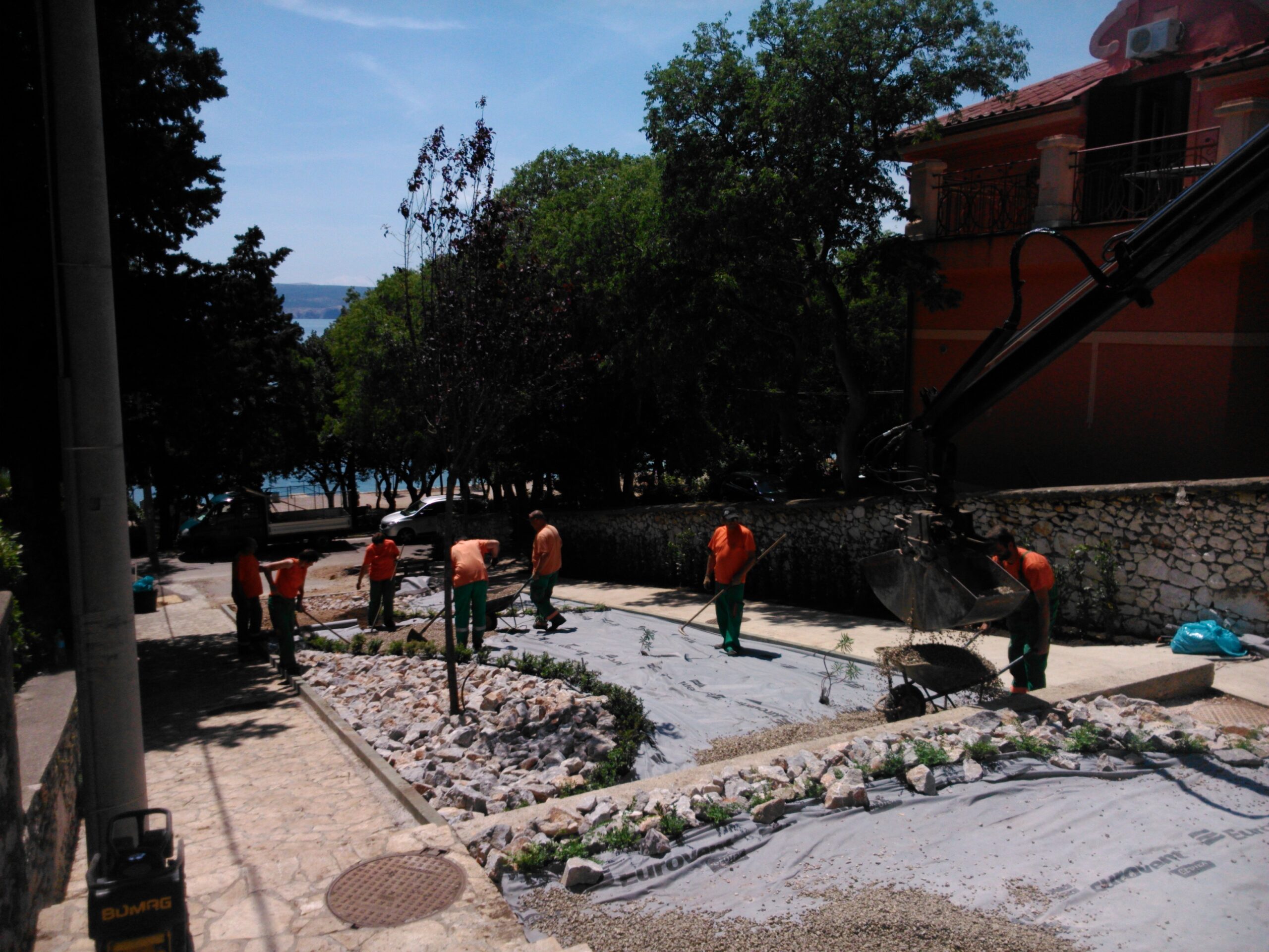 Potezi niskih živica odvajaju pojedine veličine kamenja – grmolika kozokrvina (Lonicera nitida) i patuljasta forma crvenolisne žutike (Berberis thunbergi „Atropurpurea“ Nana ). Kroz središte površine valovito se proteže autohtona velika mlječika (Euphobia wolfenii).