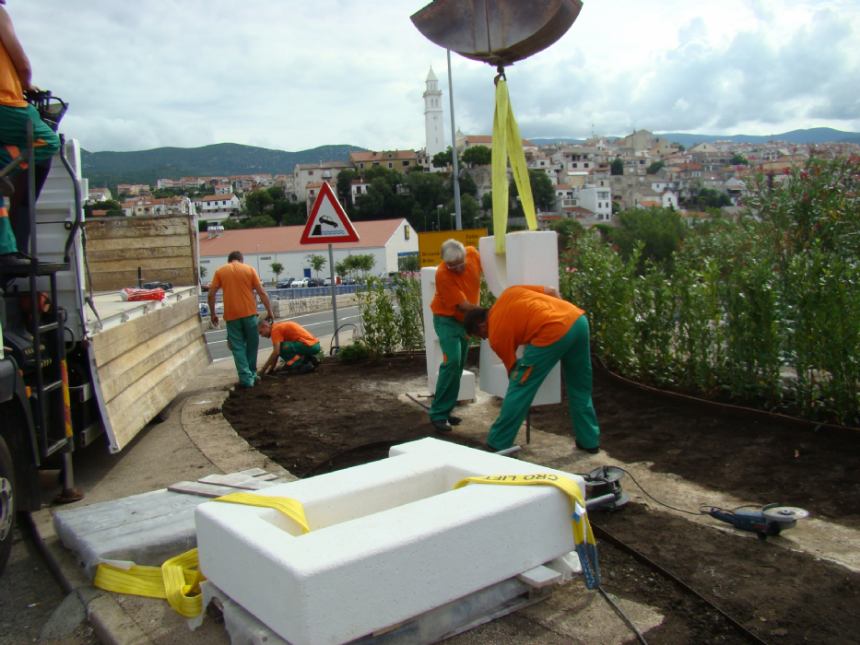 Ovim preuređenjem trajno se investiralo u prostor, a dugoročno gledano smanjeni su troškovi održavanja. Slova i ploča osmišljene su u suradnji sa stručnjacima iz Gradskog muzeja i Gradske knjižnice, a samu izvedbu je preuzela mlada kiparica iz Novog Vinodolskog.