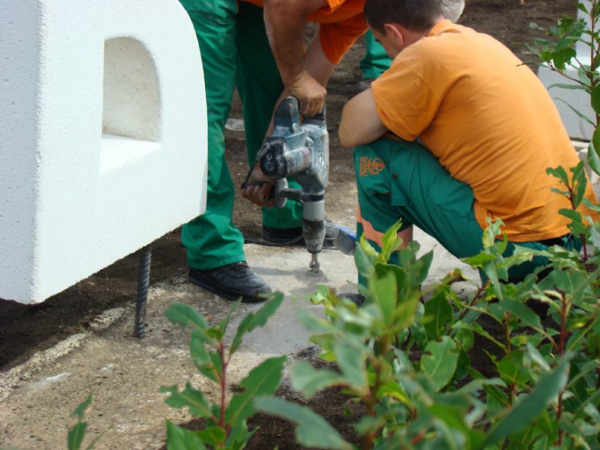 - cvjetna gredica ispred slova unosi malo boje i dodatno ih naglašava