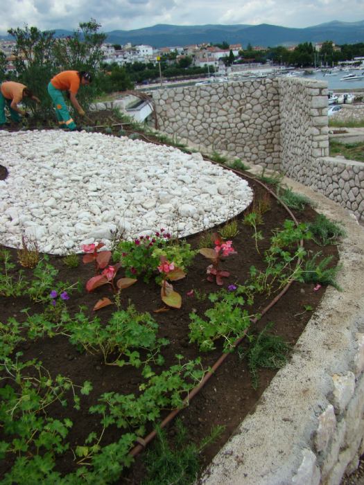 - ploča je oivičena kulisom oleandera visine 2-2,5m, lavandom i puzajućim ružmarinom.