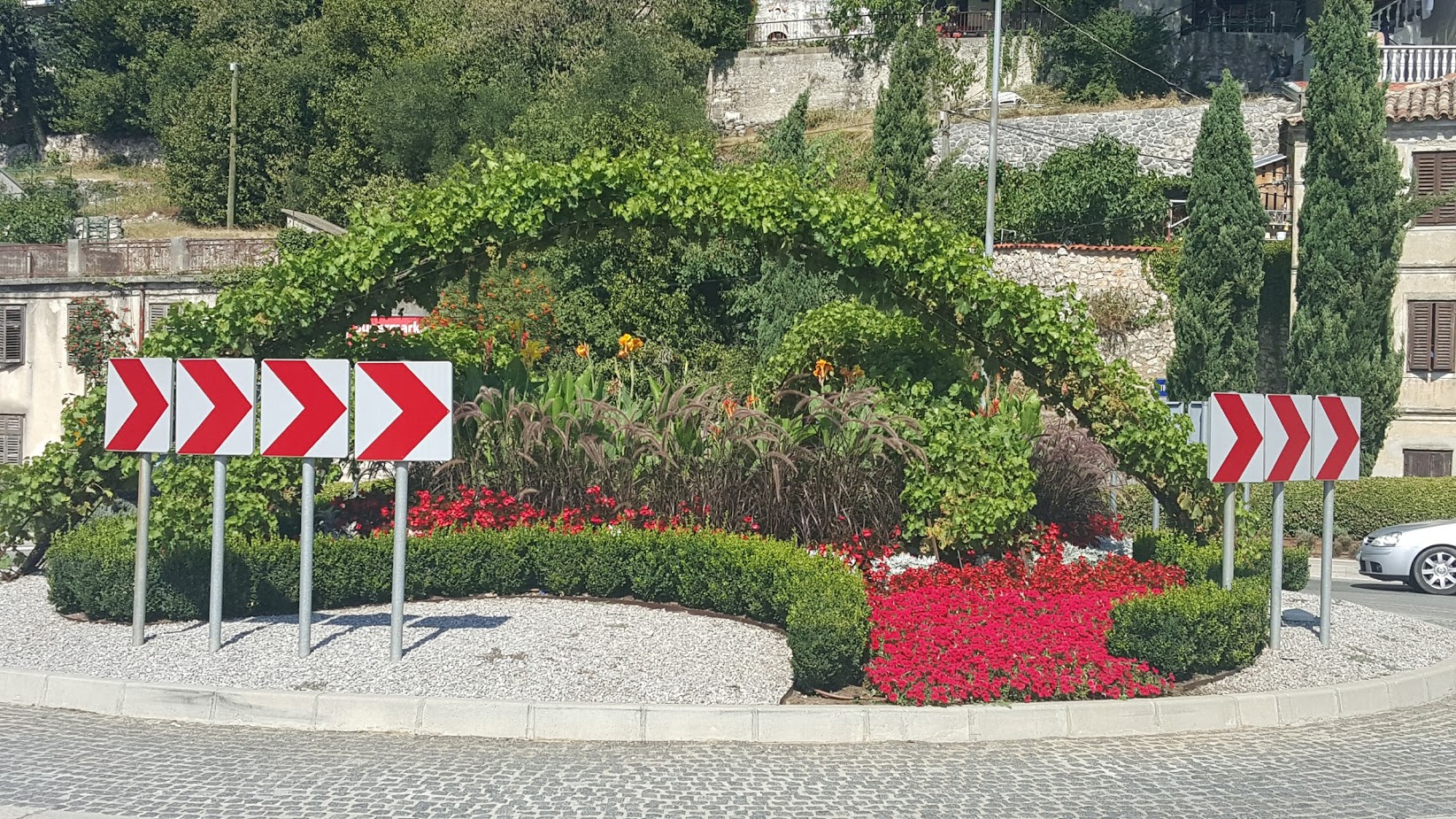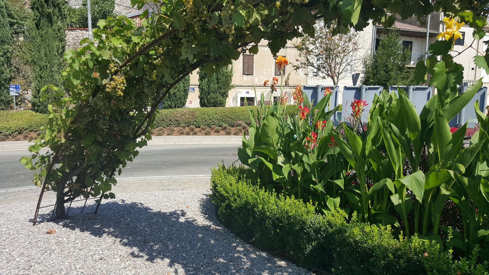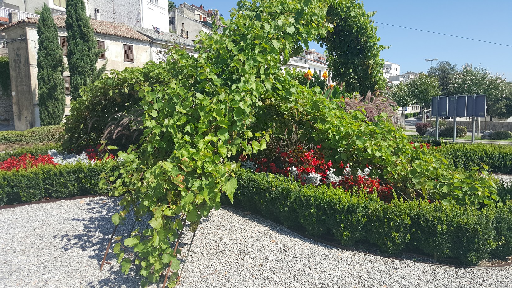 To je bila inspiracija za sadnju ove vrste (Vitis vinifera ) na polukružne nosače u središtu kružnog toka.