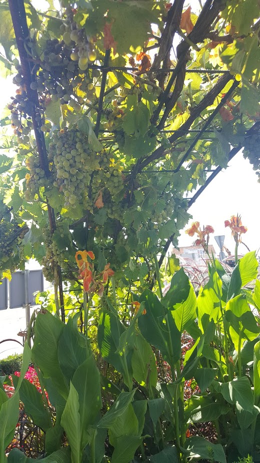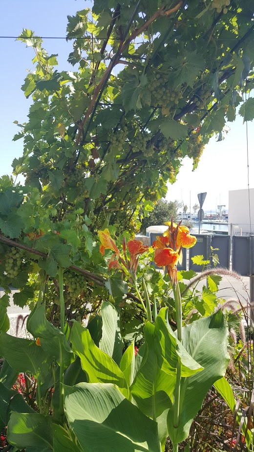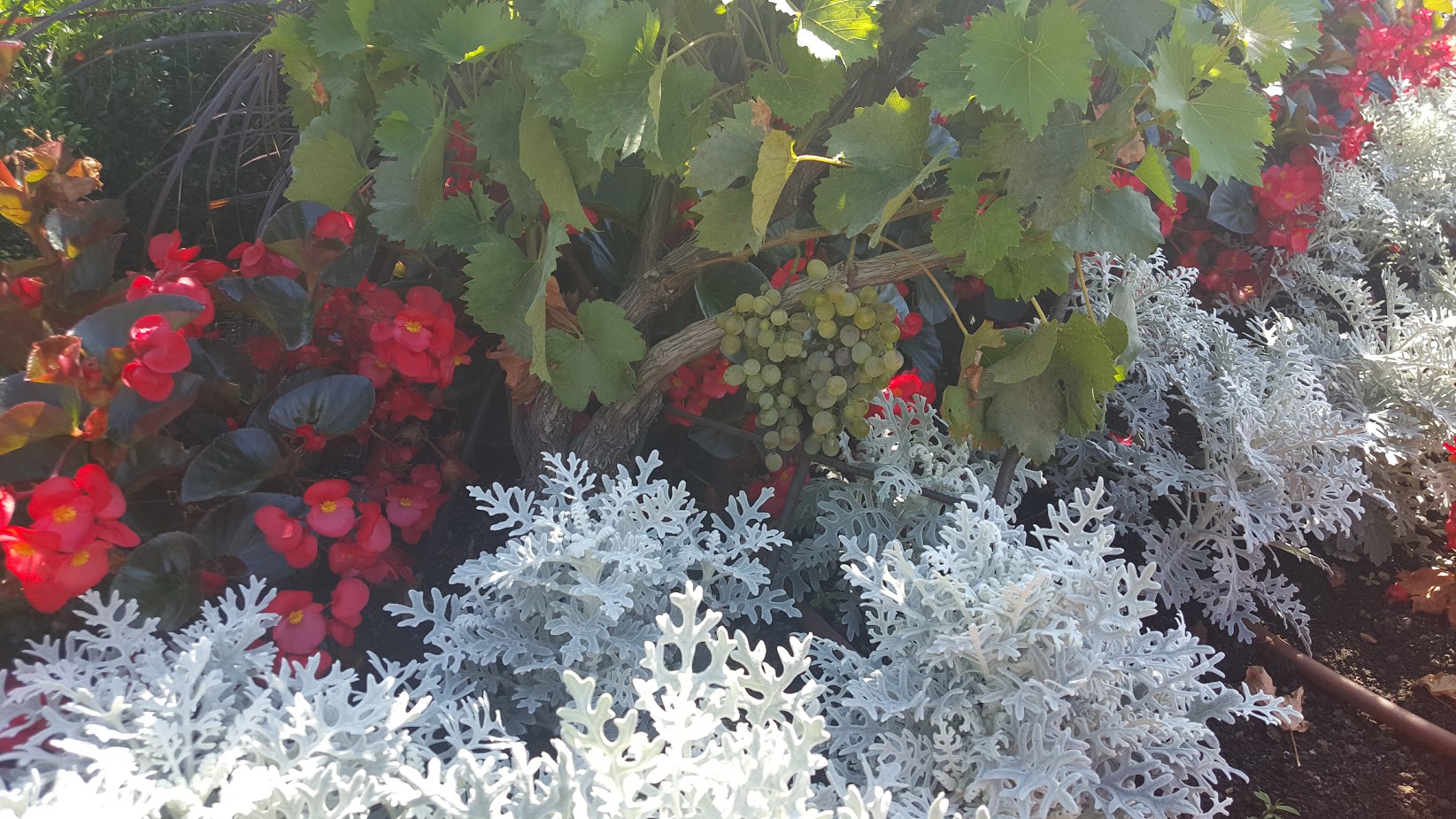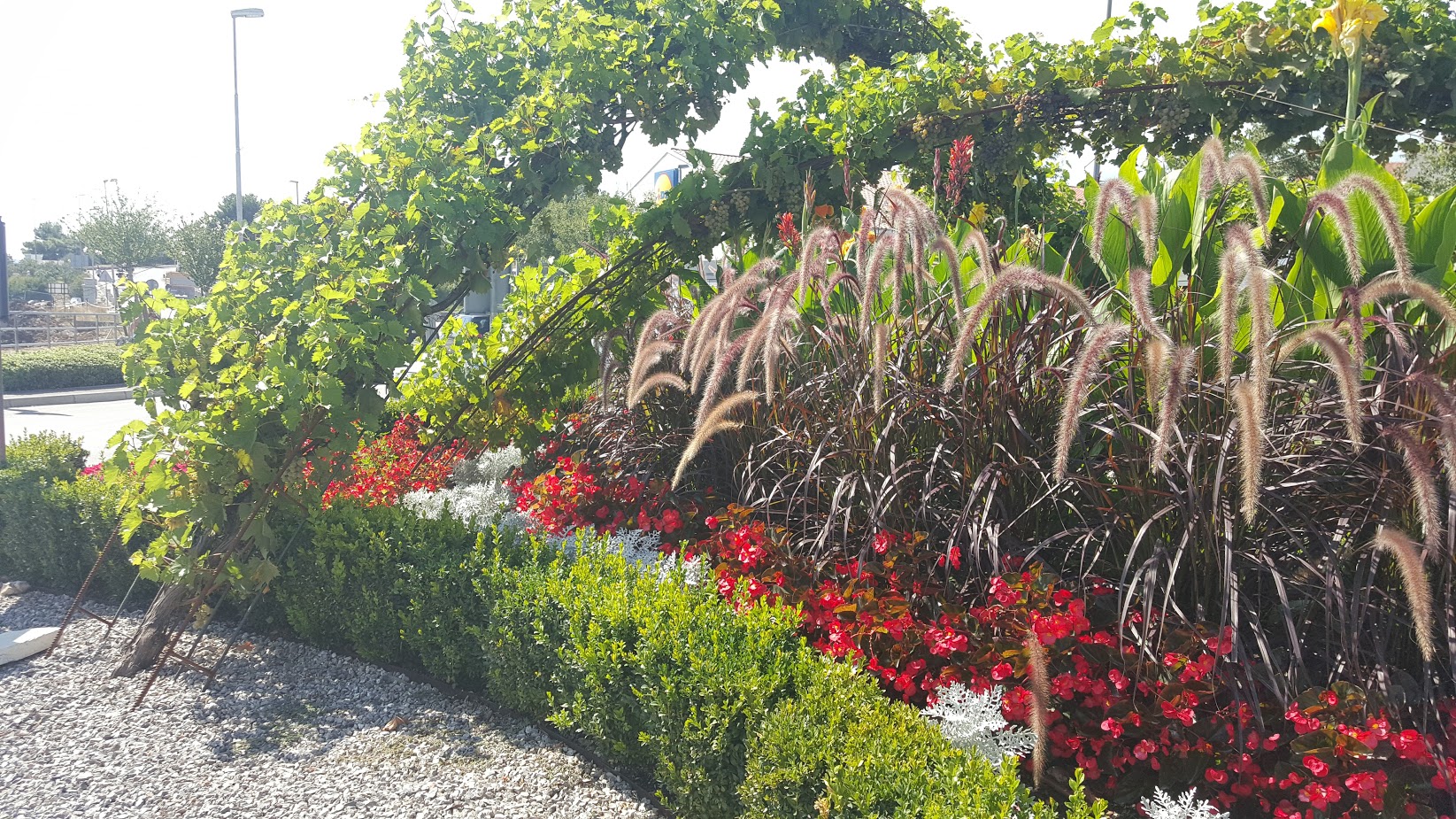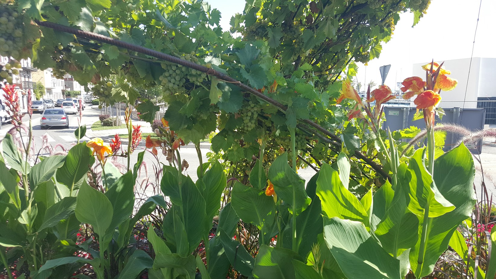 To je bila inspiracija za sadnju ove vrste (Vitis vinifera ) na polukružne nosače u središtu kružnog toka.