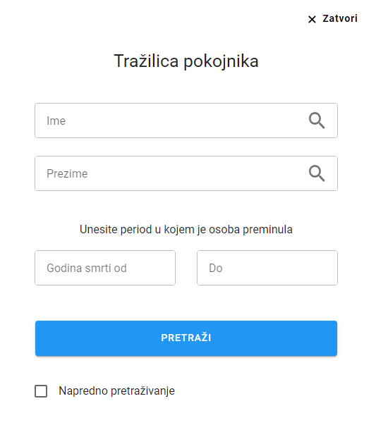 Tražilica pokojnika preko QR koda ili web aplikacije